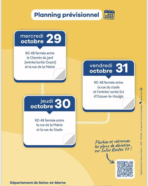 Pour consulter les plans de déviation, flashez le QR code ou rendez-vous sur Infos Routes 77.